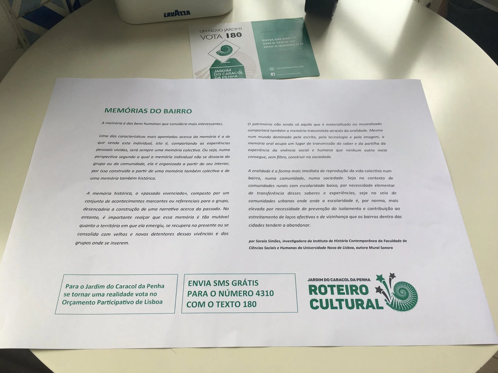 Hoje o meu/nosso bairro sai à rua reivindicando um jardim em detrimento de mais um parque de estacionamento - Jardim do Caracol da Penha. A Associação Mural Sonoro juntou-se ao repto com a vizinhança. Na Padaria Saudade encontrarão uma exposição em vídeo durante o dia de conversas que mantive com pessoas que aqui vivem ou trabalham desde 1926 intitulada ''Memórias do Bairro'', encontrarão nela um pequeno texto que escrevi acerca da importância da memória e da sua relação com o espaço físico de vivência e encontro.